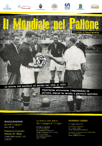 Dal 12 giugno al 13 luglio, l’associazione di volontariato onlus Erga Omnes di Chieti, grazie alla gentile concessione del collezionista abruzzese Renato Mariotti di Loreto Aprutino, in occasione dei mondiali di calcio 2014 che si svolgeranno in Brasile dal 12 giugno al 13 luglio, allestisce una mostra nello Spazio Esposizioni Temporanee di Palazzo de’ Mayo a Chieti.