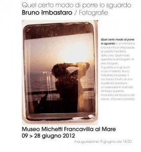 Quel certo modo di porre lo sguardo è un’intenzione, è la volontà di oltrepassare la visibilità manifesta delle cose. Quel modo appartiene al fotografo. Al vero fotografo. Si guarda con gli occhi e con l’intelletto. Bruno Imbastaro sa vedere. Il suo lavoro è frutto di una equilibrata sinestesia, un’osservazione ricercata istintiva e paziente, modulata dal tempo e dal silenzio.