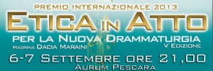 Venerdì 6 e sabato 7 settembre l’Aurum di Pescara ospita il Premio Internazionale 2013 “Etica in Atto per la nuova drammaturgia”.