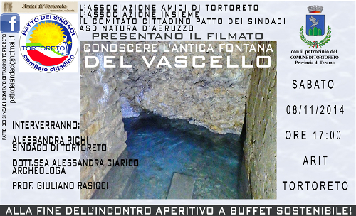 Sabato 8 novembre l’Associazione Amici di Tortoreto, l’Associazione Insieme, il Comitato Cittadino organizzano l’incontro pubblico “Conoscere l’antica Fontana del Vascello”. L’evento segue l’appello di gennaio, dove si denunciava il cedimento di una parte della Fontana.