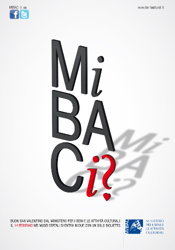 San Valentino è il primo grande evento del 2013 che il MiBAC offre a tutti i cittadini italiani e stranieri per stimolare la conoscenza e la riscoperta delle nostre bellezze artistiche e valorizzare una ricchezza che tutto il mondo ci invidia e di cui noi, per primi, possiamo godere.