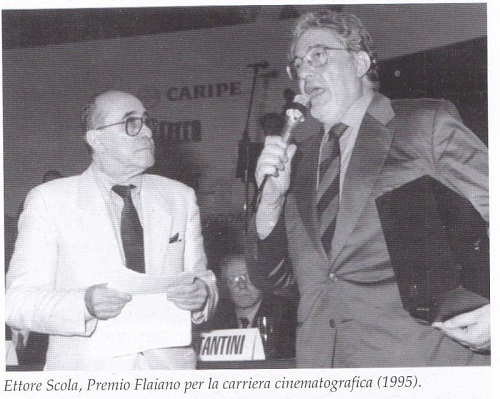 Il grande regista, che ha dato al cinema autentici capolavori sia come sceneggiatore che come regista, venne a Pescara per ricevere il Premio Flaiano alla carriera nel 1995, in occasione della XXII edizione della manifestazione – nata per onorare nella sua città Ennio Flaiano -, che in quell’anno vide assegnare il Pegaso d’oro oltre che allo stesso Scola a Seamus Heaney, di lì a qualche mese laureato anche con il Nobel, a Virna Lisi, alle gemelle Kessler, a Raf Vallone, a Penny Marshall e al grande compositore Armando Trovajoli.
