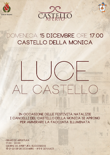 Nell’ambito del progetto natalizio Natale al Castello, domenica 15 dicembre sarà acceso l’impianto di illuminazione installato all’ingresso del Castello Della Monica.