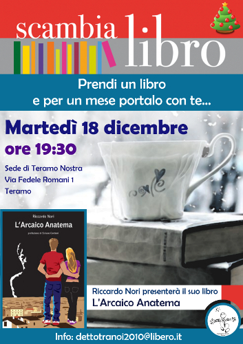 Potremo chiederlo direttamente allo scrittore teramano Riccardo Nori che presenterà il suo primo romanzo “L’arcaico anatema” martedì 18 dicembre durante l’ultimo appuntamento dell’anno con lo Scambialibro.
