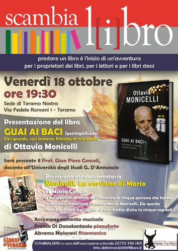 Questa sera, nell’ambito del XVIII Premio internazionale della fotografia cinematografica Gianni Di Venanzo, l’associazione Detto tra noi in collaborazione con l’associazione Teramo Nostra presenterà il libro “Guai ai baci” di Ottavia Monicelli, edito da Sperling&Kupfer, una lunga e dolorosa lettera d’amore che l’autrice scrive al padre, il grande Mario Monicelli, apprezzatissimo regista del cinema italiano.