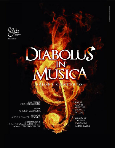 L’Auditorium Diocleziano risuonerà delle note demoniache di famose opere di Paganini, Saint-Saëns, Tartini e Liszt, eseguite dai Maestri Andrea Castagna al violino e Angela Giancristofaro al pianoforte. Voce narrante sarà Giuliano Gomez, noto speaker di Radio Delta 1, che interpreterà alcuni passi dell’Inferno di Dante Alighieri, letture dal Faust di Goethe ed alcuni scritti sulle composizioni eseguite. Sarà inoltre presente lo storico Domenico Maria del Bello che curerà l’intervento dal titolo “L’angelo caduto”.