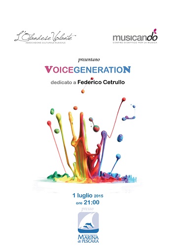 La sera di mercoledì 1° luglio, il Centro Didattico Musicando presenta lo spettacolo Voice Generation, con i ragazzi delle classi di Canto Moderno, diretti dal M° Ersilia Di Fonzo. Il concerto è dedicato a Federico Cetrullo, per sostenere la sua battaglia dopo l’incidente stradale. Il concerto è ad ingresso libero.