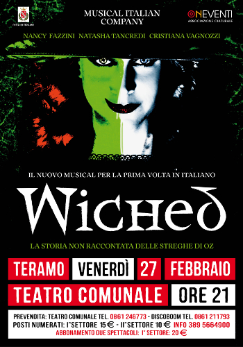 Il 27 febbraio, al CineTeatro Comunale di Teramo, andrà in scena il musical Wiched-la storia non raccontata delle streghe di oz.