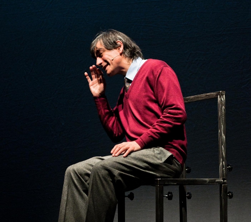 Saverio La Ruina nello spettacolo è Tonino, un sarto che interloquisce, con squisita, disarmata gentilezza con il pubblico, raccontando la vicenda dimenticata degli italiani d’Albania. Materializza un dramma della mancanza d’identità, portandoci in una terra di mezzo, dove l’individuo deve resistere alla scoperta di non avere nessuna radice, nessuna certezza, neppure illusoria. Accompagnato dalle note di Roberto Cherillo, che riempiono le pause di silenzio, il protagonista non si lamenta, non accusa, si rivolge alla platea con fare timido, sommesso senza di retorica.