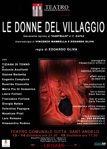 13, 14 e 15 dicembre secondo appuntamento al Teatro Comunale di Città Sant’Angelo con la Stagione Legami del Teatro Immediato: andrà in scena lo spettacolo in prima nazionale Le donne del villaggio, con la regia di Edoardo Oliva e la drammaturgia di Vincenzo Mambella e Edoardo Oliva, protagonista la nota attrice pescarese Tiziana Di Tonno.