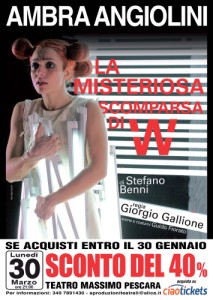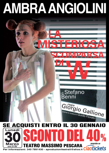 Il 30 marzo il Teatro Massimo ospiterà Ambra Angiolinini nel monologo di Stefano Benni “La misteriosa scomparsa di W”, regia di Giorgio Gallione.