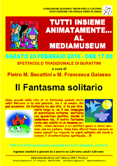 Sabato 20 febbraio al Mediamuseum di Pescara, spettacolo tradizionale di burattini a cura di Pietro Becattini e Francesca Galasso.