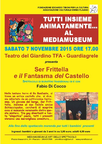 Sabato 7 novembre alle ore 17,00 al Mediamuseum si terrà lo spettacolo di burattini “Ser Frittella e il Fantasma del Castello”, a cura di Fabio Di Cocco, dove il fantasma più che far paura farà molto, molto ridere.