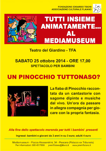 Nuovo spettacolo al Mediamuseum dedicato ai più piccoli: sabato 25 ottobre andrà in scena Un Pinocchio tuttonaso. Fabio Di Cocco racconterà la storia di Pinocchio, ma in una versione inedita arricchita da musica, pupazzi, estro e fantasia, con sagome dipinte e musiche dal vivo.