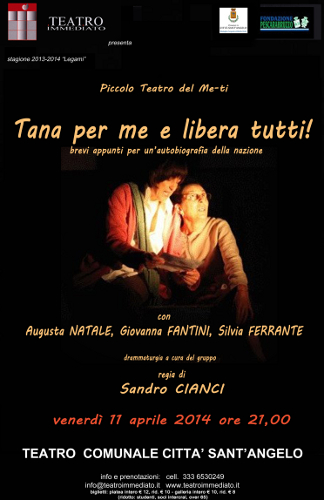 Venerdì 11 aprile appuntamento al Teatro Comunale di Città S. Angelo con lo spettacolo “Tana per me e libera tutti!”, con la regia di Sandro Cianci della storica compagnia abruzzese del Piccolo Teatro del ME-TI. Uno spettacolo che attraversa, in modo semplice, momenti della storia civile e del costume del nostro paese, riportando tutto al cuore di tutti.