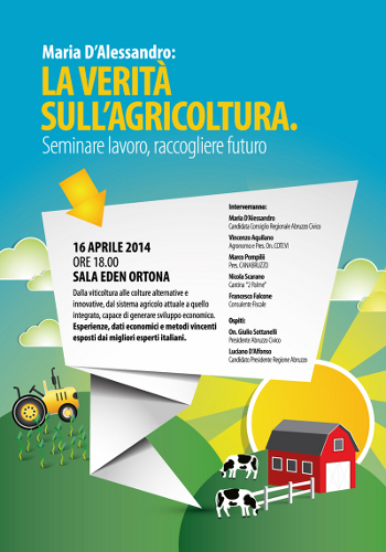 Un terzo delle aziende teatine sono impegnate nel settore agricolo. Ben 27mila dei 40mila ettari di vigne abruzzesi sono terra della provincia di Chieti. Analizzare la situazione e i dati attuali, esporre esperienze vincenti e proporre soluzioni efficaci: questi gli obiettivi del convegno “La verità sull’agricoltura – Seminare lavoro, raccogliere futuro”, organizzato da Maria D’Alessandro per mercoledì 16 aprile a Ortona.