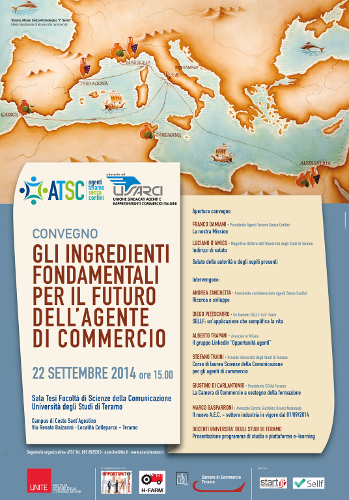 Lunedì 22 settembre, presso la sede dell’Università di Teramo, si terrà il convegno “Gli ingredienti fondamentali per il futuro dell’agente di commercio” che inaugurerà la seconda edizione del Corso di laurea in Scienze della Comunicazione per gli agenti di commercio, ideato da Usarci Teramo in collaborazione con l’Università degli Studi di Teramo per la riqualificazione e l’alta formazione professionale degli agenti di commercio. Un connubio vincente suggellato dai successi ottenuti dai 52 agenti iscritti al primo anno e confermato dall’elevato numero di iscrizioni previste per l’anno accademico 2014/2015.