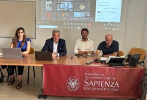 All’evento hanno partecipato il Presidente della Fondazione Enasarco, Dott. Alfonsino Mei, il Preside della facoltà di Economia, Prof. Giovanni Di Bartolomeo, il Direttore del Dipartimento di Economia e Diritto – Prof. Michele Raitano – e il Prof. Parisio Di Giovanni.