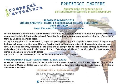 La prima di queste escursioni dedicate al territorio abruzzese permetterà di scoprire uno dei paesi collinari più belli della Valle del Tavo: Loreto Aprutino.